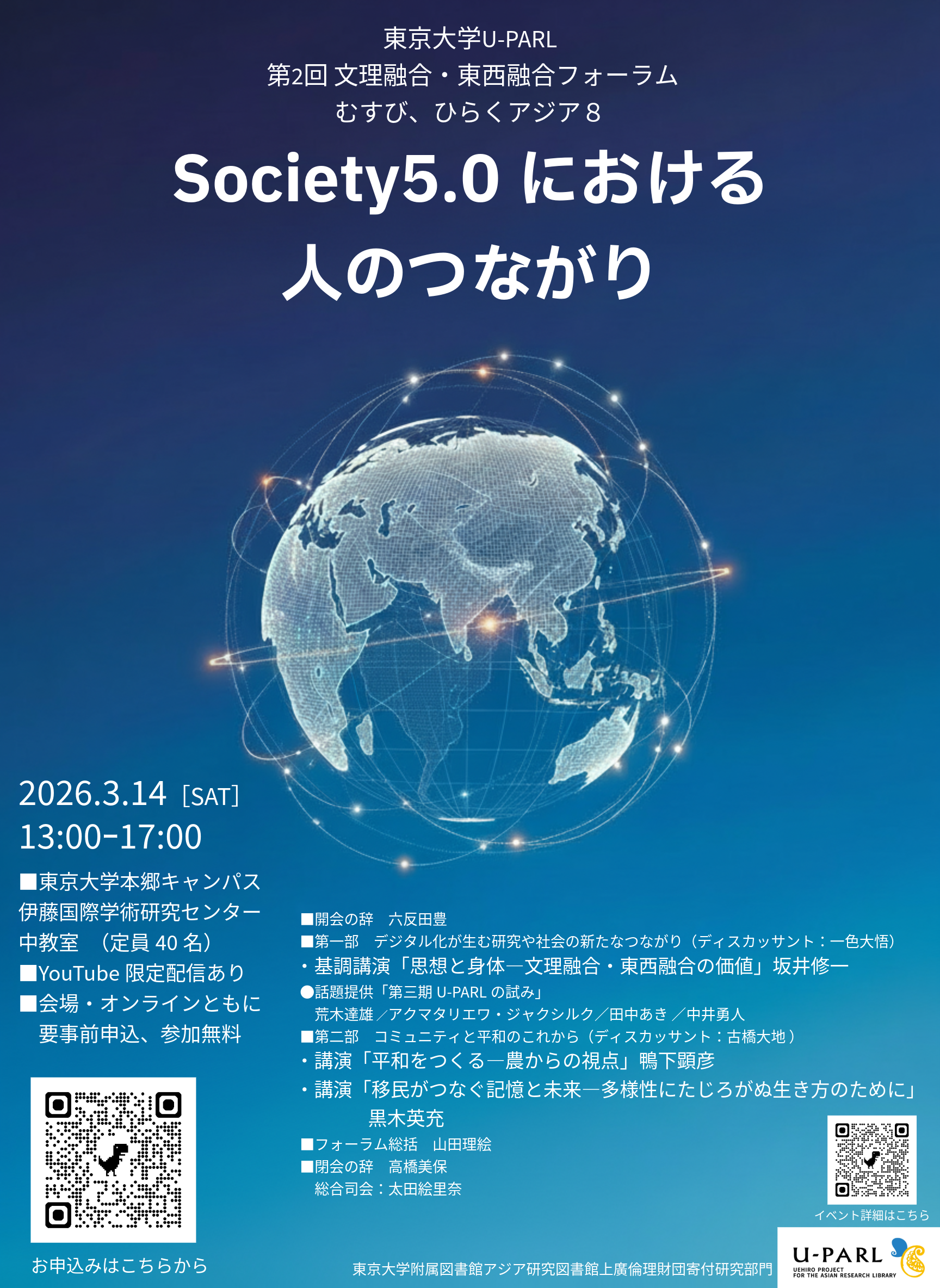 2026年3月14日(土)、U-PARL第2回フォーラムを対面、オンラインのハイブリッド形式で開催いたします。みなさまのご参加を楽しみにお待ちしております。